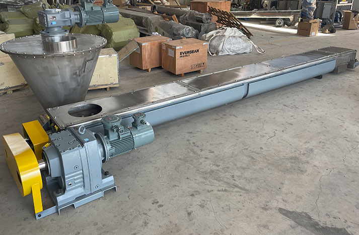 這臺雙軸螺旋輸送機,長3.5米,針對棉纖維特性定制的前端加厚葉片強效擠壓脫雜,中段精準(zhǔn)攪拌勻化,物料處理更高效。
